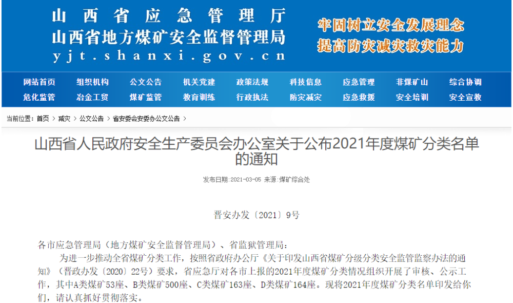為有效防范各類煤礦生產(chǎn)安全事故,以安風(fēng)險管控為主線,綜合考慮煤礦安全管理、開采技術(shù)條件、災(zāi)害程度、生產(chǎn)布局、裝備工藝、安全誠信、安全生產(chǎn)標(biāo)準(zhǔn)化建設(shè)、人員素質(zhì)及生產(chǎn)建設(shè)狀態(tài)等因素,從去年開始,我省將煤礦按安全保障程度從高到低確定為 A、B、C、D四類。