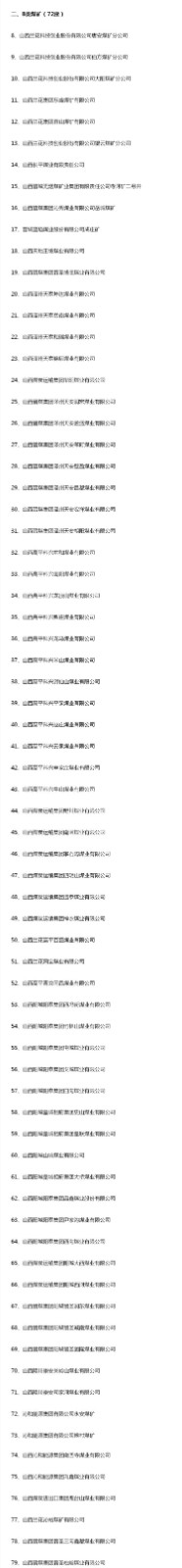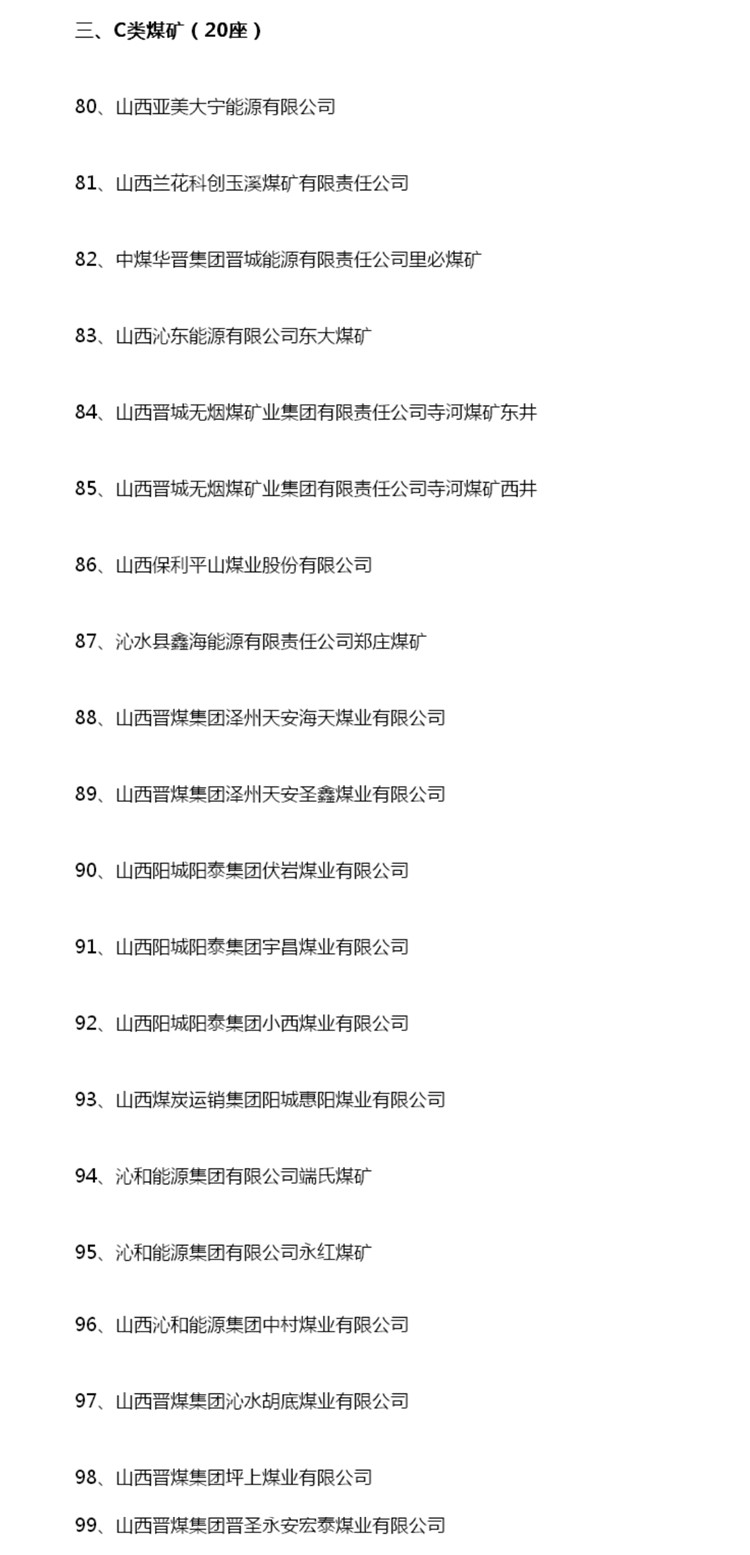 A類煤礦7座、B類煤礦72座、C類煤礦20座、D類煤礦13座